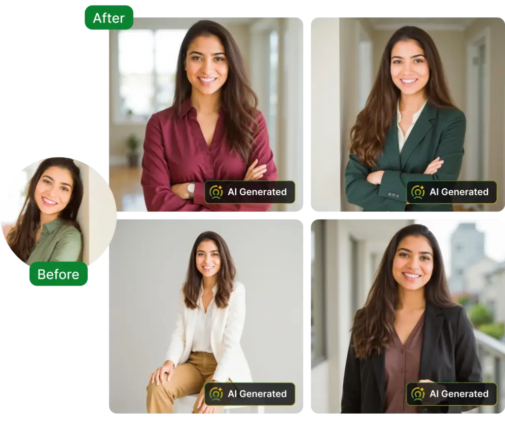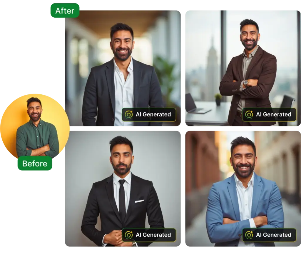 Our advanced AI analyzes and transforms your photos into polished, professional-quality headshots.